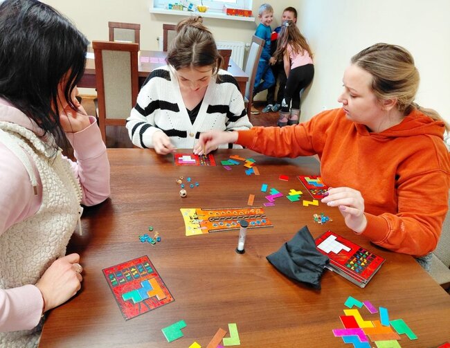 Zajęcia poprowadzili Państwo Brzostowscy z Kcyni, znani pasjonaci i promotorzy kultury gier planszowych. Ich prywatna kolekcja, licząca ponad 120 tytułów, pozwoliła każdemu uczestnikowi znaleźć coś dla siebie – od prostych gier zręcznościowych po bardziej wymagające tytuły strategiczne.