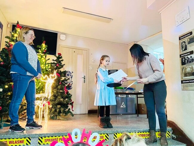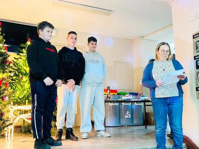 Zaprezentowano ich sukcesy w sporcie oraz działalności artystycznej. Wyróżnieni uczniowie zostali nagrodzeni gromkimi brawami od nauczycieli i rówieśników, co stworzyło miłą i motywującą atmosferę. Podczas apelu podziękowano również wolontariuszom za ich zaangażowanie w bożonarodzeniową zbiórkę żywności, doceniając ich wkład i pomoc potrzebującym.