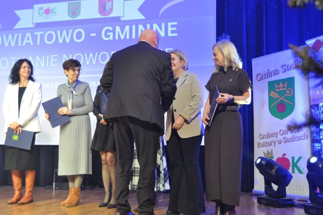 Po występie głos zabrał wójt gminy Sadki Michał Piszczek, który podkreślił czas intensywnej pracy, rolę współpracy, dziękował i złożył uczestnikom noworoczne życzenia. Gmina Sadki również przygotowała prezentację podsumowującą inwestycje przeprowadzone w 2025 roku. Kolejnym punktem było podsumowanie przez dyrektor Joannę Brzozowską całorocznych działań Gminnej Biblioteki Publicznej w Sadkach. Uczestnicy mieli także możliwość obejrzenia prezentacji przygotowanej przez Gminny Ośrodek Kultury w Sadkach. Po podsumowaniach, okolicznościowe przemówienie wygłosiła poseł na Sejm RP Iwona Kozłowska.