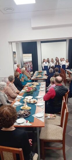 Wigilijne spotkanie Aktywnego Seniora uświetnił zespół wokalny że szkoły podstawowej im Jana Czochralskiego opiekunem i dyrygentem jest Dobromiła Siewkowska . Spotkanie odbyło się w bardzo miłej atmosferze. Dziękujemy wszystkim a szczególnie gościom za przybycie i spędzenie z nami tego szczególnego dnia.