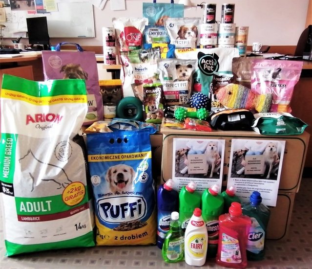 Kilkadziesiąt kilogramów karmy, ciepłe koce, środki czystości, smycze i# oczywiście mnóstwo smaczków przekazaliśmy na rzecz Schroniska dla Zwierząt w Bydgoszczy.