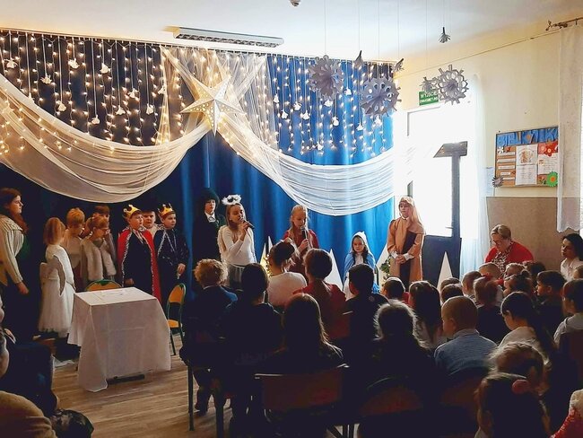 7 stycznia w Szkole Podstawowej# im. bł. Marii Karłowskiej w Chwaliszewie odbyło się przedstawienie "Historia cudownej nocy".