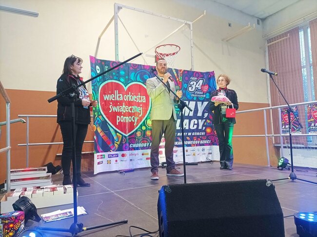 W Kcyni 34. finał Wielkiej Orkiestry# Świątecznej Pomocy odbywał się w sali gimnastycznej Szkoły Podstawowej im. Jana Czochralskiego przy ulicy Pobożnego.