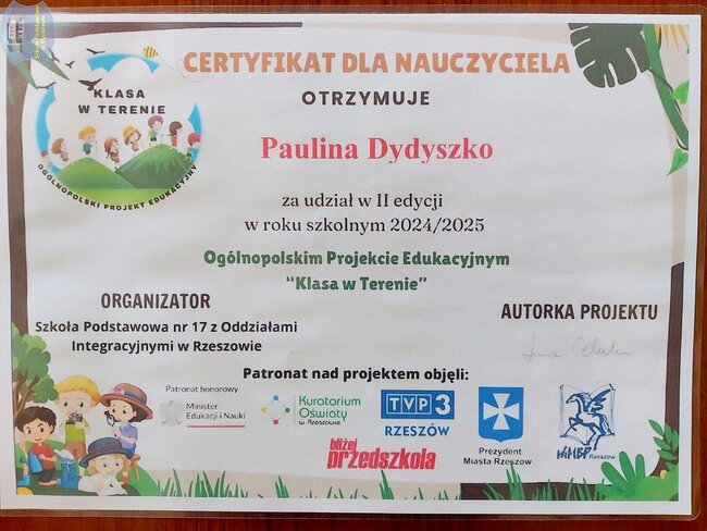 Za udział w projekcie oraz wykonanie zadań nasza placówka otrzymała certyfikat, a każdy z uczestników – indywidualny dyplom.
