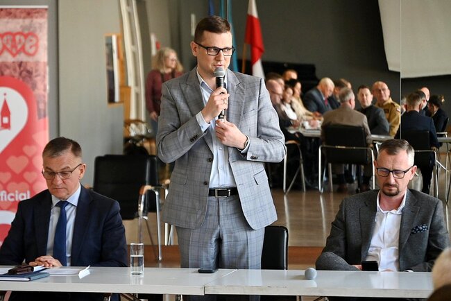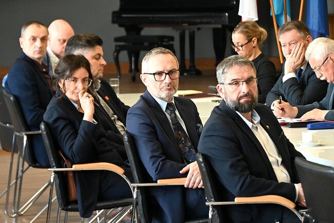 Po otwarciu spotkania oraz przedstawieniu i zatwierdzeniu porządku wtorkowego posiedzenia głos zabrali zaproszeni goście: wojewoda kujawsko-pomorski Michał Sztybel oraz członek zarządu województwa kujawsko-pomorskiego Dariusz Kurzawa.