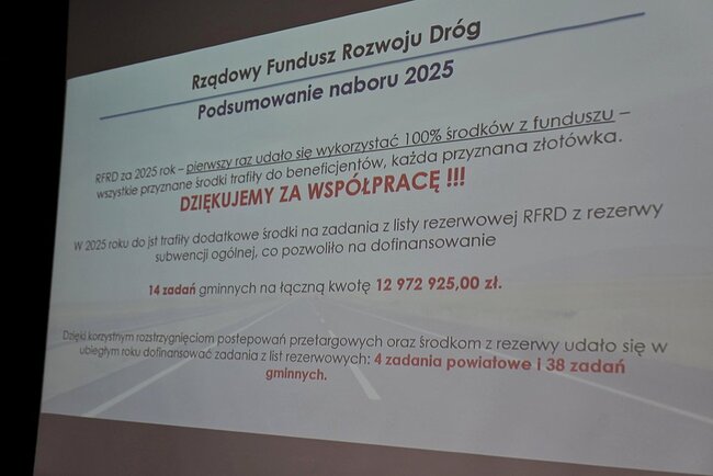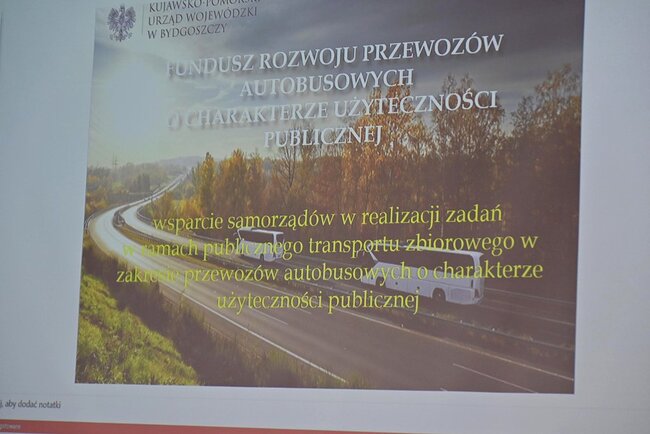 W dalszej części obrad uczestnicy zapoznali się z wynikami aktualnej edycji Rządowego Funduszu Rozwoju Dróg oraz z informacjami dotyczącymi przewozów autobusowych. Następnie przedstawiono prezentację Urzędu Marszałkowskiego w Toruniu dotyczącą bieżących konkursów realizowanych w ramach programów unijnych.