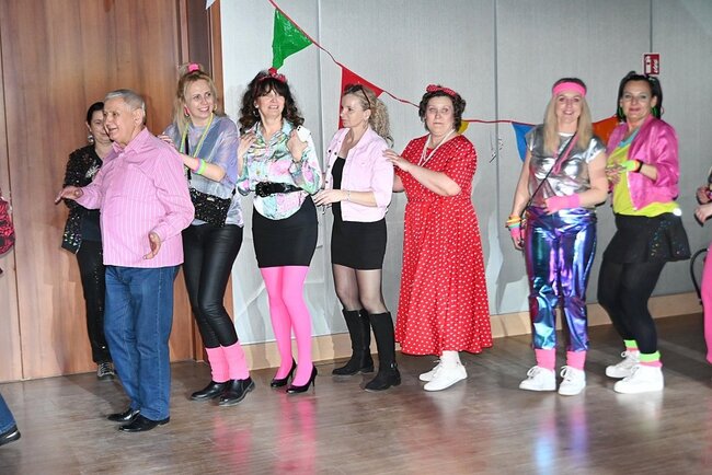 Od pierwszych minut parkiet wypełnił się dźwiękami niezapomnianych hitów sprzed lat. Syntezatorowe brzmienia, rytmy disco i popowe klasyki porwały do tańca zarówno miłośników lat 80., jak i 90. Energia udzielała się wszystkim, a dobra zabawa trwała do późnych godzin. Ogromną rolę odegrały również stroje uczestników, które sprawiły, że wydarzenie zamieniło się w prawdziwy pokaz mody sprzed kilku dekad. Falowane fryzury i odważne stylizacje idealnie dopełniały karnawałowy klimat.