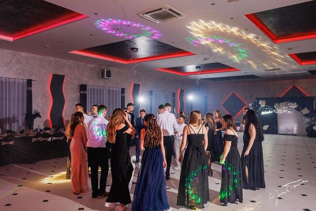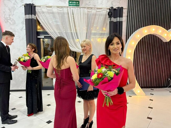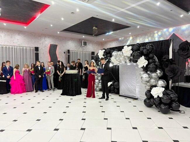 Wieczór od pierwszych chwil zachwycał atmosferą radości, wzruszeń i wspólnego świętowania. Uczniowie, we współpracy z Rodzicami, perfekcyjnie przygotowali całe wydarzenie – od oprawy organizacyjnej po dbałość o każdy szczegół. Eleganckie stroje, piękna dekoracja sali oraz doskonała muzyka sprawiły, że parkiet przez wiele godzin tętnił życiem.