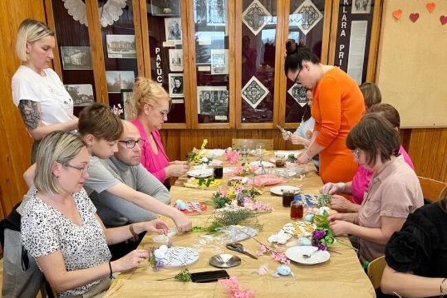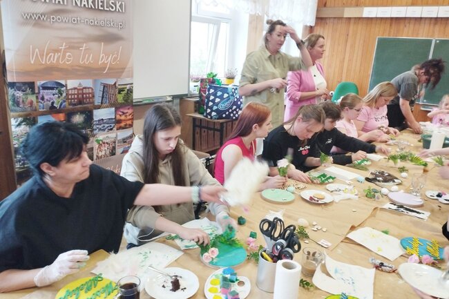 Po części teoretycznej uczestnicy wzięli udział w zajęciach praktycznych, podczas których samodzielnie tworzyli wielkanocne zawieszki dekoracyjne. W przyjaznej atmosferze wspólna praca zamieniła się w czas pełen radości, integracji i inspiracji. Dodatkową atrakcją był słodki poczęstunek, który umilił rozmowy i sprzyjał wymianie doświadczeń.