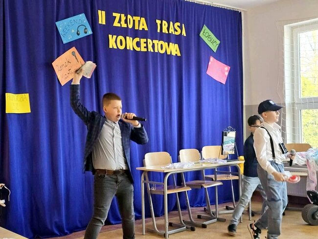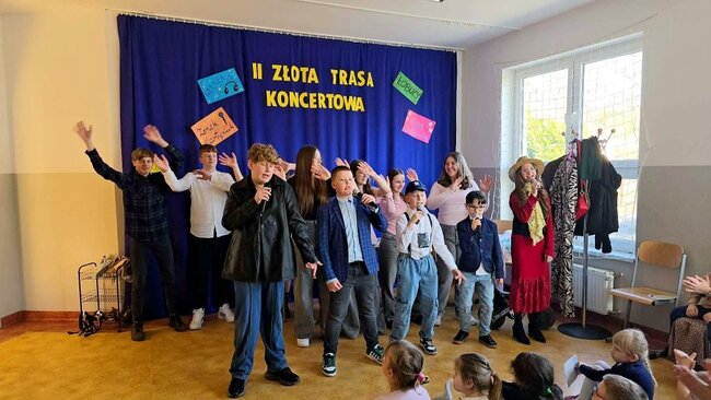 Z tej okazji odbyła się II edycja Złotej Trasy Koncertowej, podczas której na naszej szkolnej scenie pojawiły się prawdziwe gwiazdy! Publiczność mogła zobaczyć występy takich artystów jak Weekend, Zenon Martyniuk i Łobuzy, Alicja Majewska, a także bawić się przy skeczach Kabaretu Młodych Panów. Było muzycznie, wesoło i bardzo energetycznie – sala wypełniła się śmiechem, śpiewem i świetną zabawą.