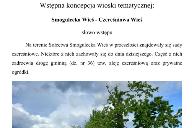 Gmina Kcynia również może mieć swoją wioskę tematyczną - Smogulecką Wieś - Czereśniową Wieś.