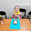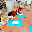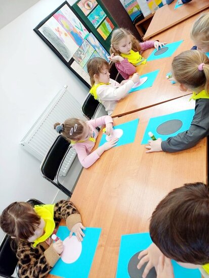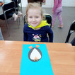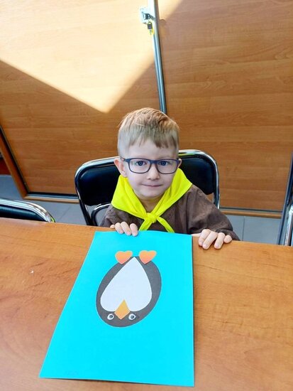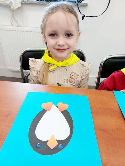"Pszczółki" z zaciekawieniem wysłuchały opowiadania o mijającej zimie i wymieniły oznaki zbliżającej się wiosny. Następnie wyklejały obrazek pingwinka, który zabrały do przedszkola.