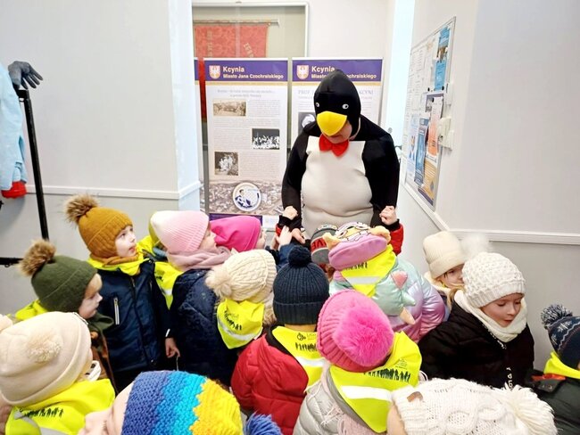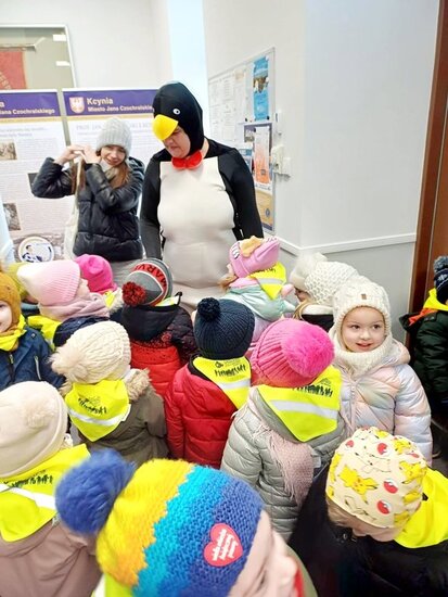 W czwartek, 26 lutego# GCKiB w Kcyni odwiedziły przedszkolaki wraz z opiekunami. Dzieci przywitał pingwinek, któremu z radością "przybijały piątkę".