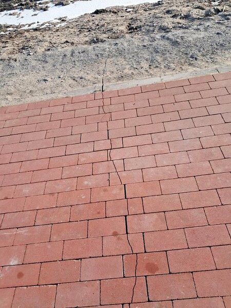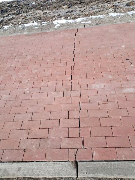 Rzeczywistość bardzo szybko zweryfikowała te decyzje. Teren, warunki pogodowe oraz krótki czas od zakończenia prac pokazały, że zastosowane rozwiązania były co najmniej ryzykowne. Na ścieżce pojawiły się liczne poprzeczne pęknięcia obejmujące jednocześnie podbudowę z pianobetonu, krawężniki oraz nawierzchnię z kostki brukowej. W wielu miejscach korona ścieżki zaczyna się zapadać i falować, co znacząco pogarsza komfort i bezpieczeństwo użytkowników.