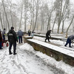 Skazani zatrudnieni na rzecz# potulickiej jednostki w grupie utrzymującej porządek na terenie Potulic, pod nadzorem funkcjonariuszy Służby Więziennej, wzięli udział w działaniach porządkowych, odśnieżając chodniki.