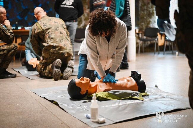 Pierwsze w #8 Kujawsko-Pomorskiej Brygady Obrony Terytorialnej (8 K-PBOT) zajęcia medyczne w ramach projektu wGotowości zakończone. Podczas szkolenia, które odbyło się 24.11.2025 r. uczestnicy zdobywali praktyczne umiejętności z zakresu ratownictwa medycznego i uczyli się działania w sytuacjach realnych zagrożeń.