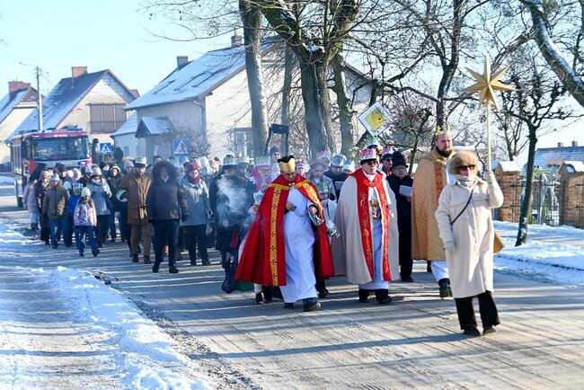 Uroczysty pochód wyruszył spod kościoła farnego około godziny 12.30. Barwny orszak, prowadzony przez Trzech Króli, wypełniły śpiew kolęd, modlitwa oraz radosna atmosfera wspólnego przeżywania święta. Uczestnicy – zarówno dorośli, jak i dzieci – z entuzjazmem włączyli się w to wyjątkowe wydarzenie, które na stałe wpisało się już w kalendarz lokalnych tradycji.