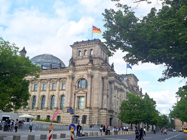 Deszcz cały czas wisiał w powietrzu i nie kazał długo na siebie czekać. Po krótkiej przerwie w galerii handlowej udaliśmy się do budynku Reichstagu. Z wielką bryłą niemieckiego parlamentu kontrastuje mały pomnik upamiętniających parlamentarzystów głównie partii lewicowych, którzy zginęli w obozach koncentracyjnych w czasach III Rzeszy.