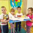 Dzieci z wielkim zaangażowaniem poznawały bieguny, ich klimat oraz niezwykłych mieszkańców. Efektem naszych zajęć była wspólna praca plastyczna – makieta przedstawiająca krainę wiecznego śniegu.