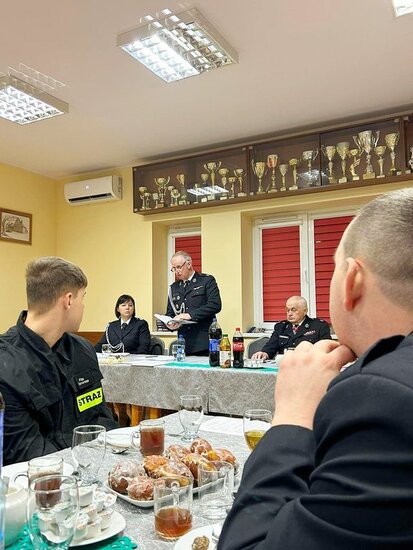 Na początku Naczelnik przywitał zaproszonych gości, strażaków i członków MDP. Z okazji Walentynek każda z Pań otrzymała od Naczelnika coś słodkiego, to był miły gest.