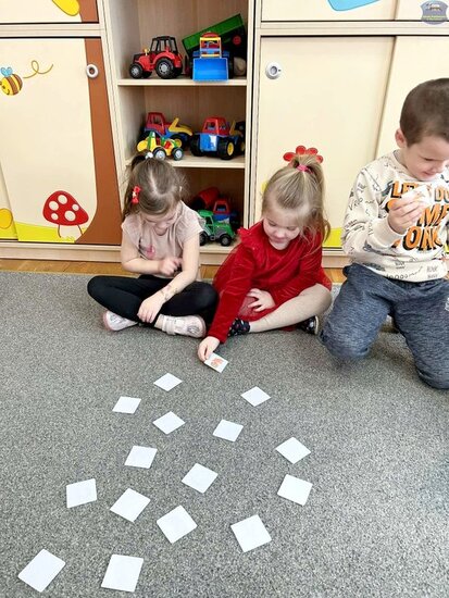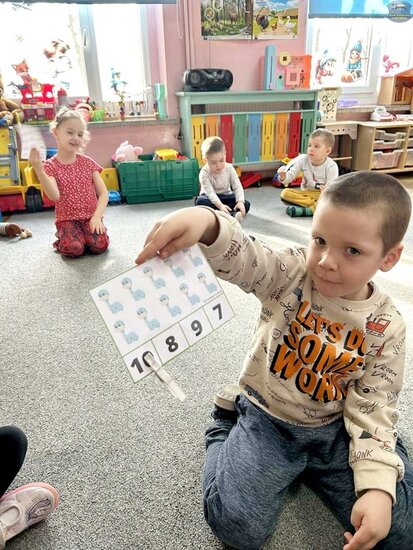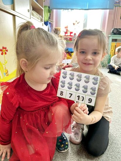 Podczas zajęć przedszkolaki doskonaliły umiejętność przeliczania elementów oraz utrwalały znajomość cyfr poprzez różnorodne ćwiczenia i gry. Dopasowywały cyfry do odpowiedniej liczby elementów, a także porównywały liczebność zbiorów, ucząc się wskazywać, gdzie jest więcej, mniej lub tyle samo.