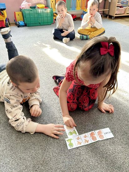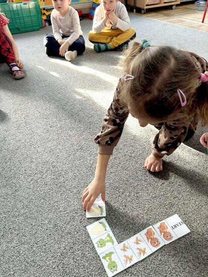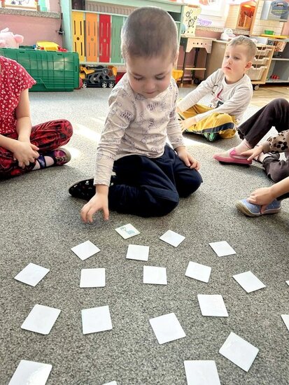 Dużo radości sprawiła gra „memory”, która pozwoliła ćwiczyć pamięć wzrokową oraz koncentrację uwagi. Dzieci odtwarzały i kontynuowały proste sekwencje, rozwijając logiczne myślenie oraz spostrzegawczość.