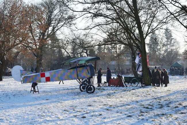 Rekonstrukcja nawiązywała do wydarzeń związanych z odzyskaniem przez Polskę kontroli nad lotniskiem Ławica w styczniu 1919 roku, jednego z kluczowych momentów Powstania Wielkopolskiego. Zdobycie lotniska miało ogromne znaczenie strategiczne — pozwoliło powstańcom przejąć nowoczesny sprzęt lotniczy i znacząco wzmocniło polskie siły w walce o niepodległość regionu.