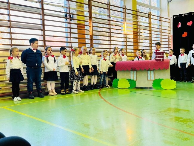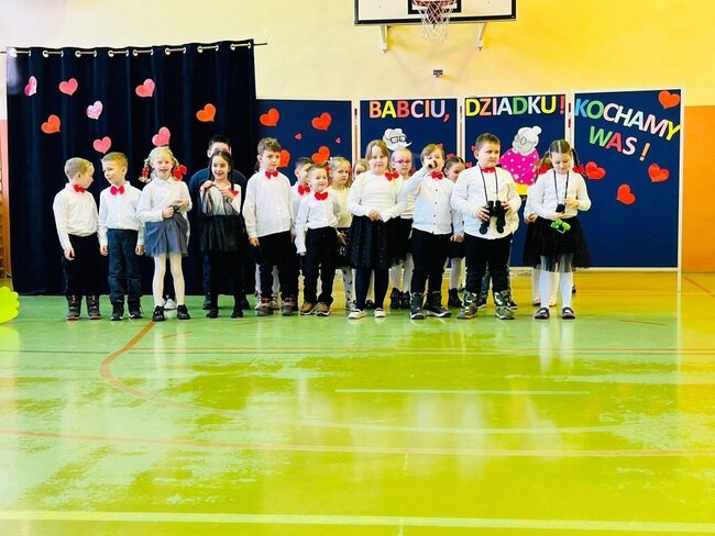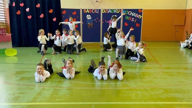 Oprócz wierszy, piosenek i życzeń przedstawiły również piękny taniec. Po wzruszającym występie nasi goście otrzymali własnoręcznie wykonane przez naszych najmłodszych uczniów upominki i wraz z "Naczelną Babcią" - Panią Dyrektor Lucyną Bursztynowicz, zostali zaproszeni na słodki poczęstunek zorganizowany przez rodziców.
