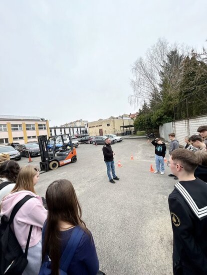 Duże emocje wzbudziły także zajęcia w warsztatach — uczniowie obserwowali pracę mechaników i ślusarzy, a także mogli samodzielnie obsłużyć wózek widłowy oraz przejść symulowaną kontrolę bezpieczeństwa na lotnisku. Dziękujemy za wizytę i do zobaczenia ponownie!