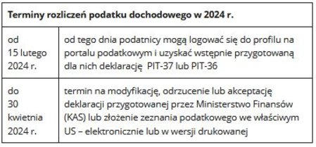 Terminy rozliczeń podatku dochodowego w 2024 r. w tabeli poniżej.