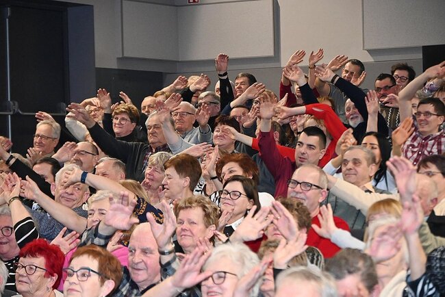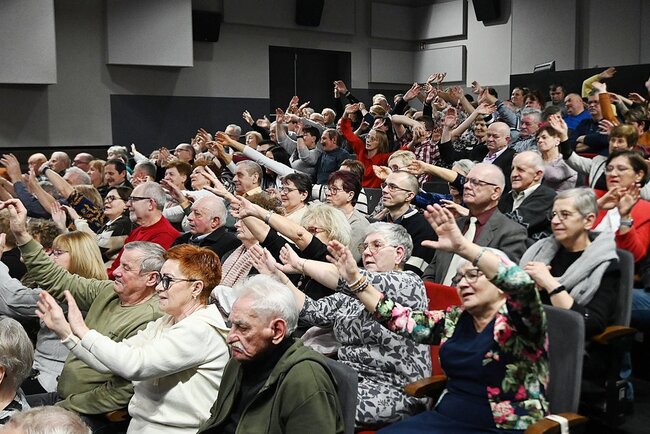 Już od pierwszych dźwięków było jasne, że publiczność przyszła tu nie tylko posłuchać, ale przede wszystkim dobrze się bawić. Sala wypełniona była po brzegi, a atmosfera szybko stała się niezwykle żywiołowa. Przez ponad dwie godziny nie brakowało uśmiechów, wspólnego śpiewania i spontanicznych reakcji widzów, którzy raz po raz nagradzali wykonawców gromkimi brawami, a także owacjami na stojąco.