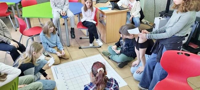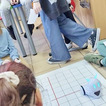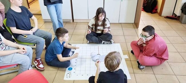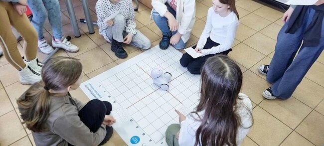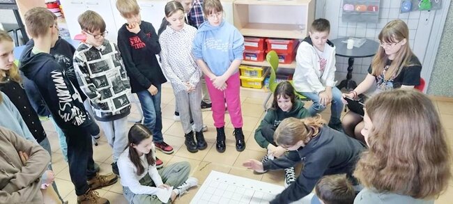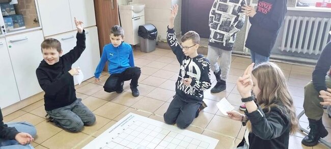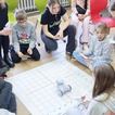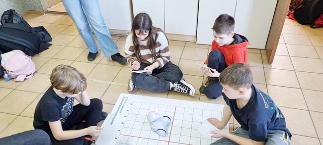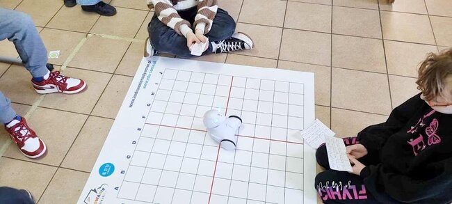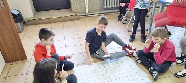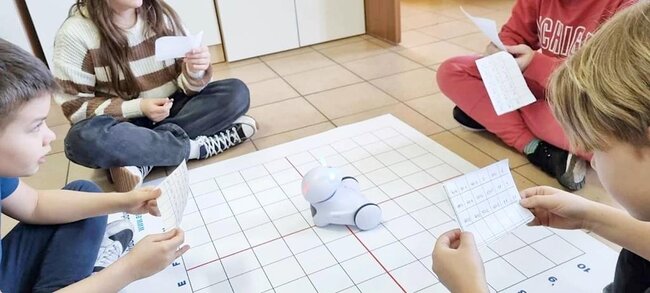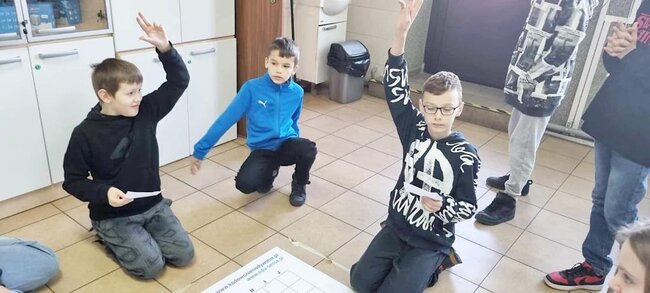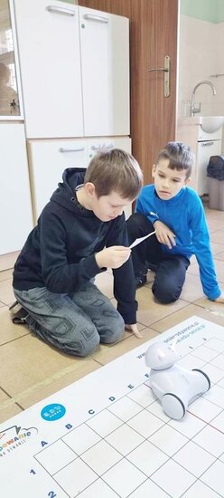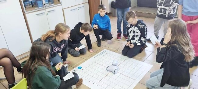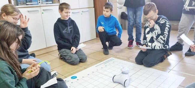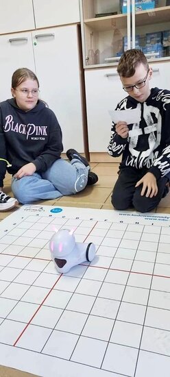 Z pomocą aplikacji multimedialnej i tabletu uczniowie tworzyli programy, które nadawały robotowi Photon określony kierunek, dźwięk i kolor. Największe emocje wzbudził pomysł aby to AI(czyli nasz Photon) wyłonił mistrzów tabliczki mnożenia w klasach 4. I tak grupa uczniów wraz z Photonami odwiedziła klasy 4 na lekcji matematyki. Rolę nauczycieli przejęli piątoklasiści z oswojonymi Photonami. Uczniowie klas 4 zostali podzieleni na 2 grupy. Każdy uczestnik musiał wykazać się znajomością tabliczki mnożenia oraz szybkością znajdowania prawidłowych odpowiedzi. A wytypowaniem najlepszego zajęła się sztuczna inteligencja czyli nasz Photon. Mistrzowie dostali bardzo dobre oceny do dziennika z dopiskiem tabliczka mnożenia z AI. Uczniowie klas czwartych już czekają na następne takie spotkania.