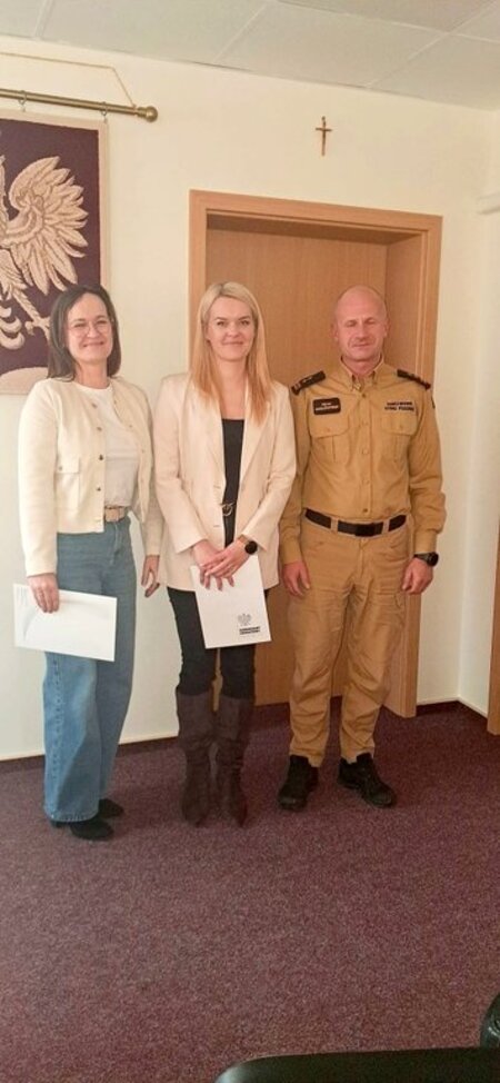 Z tej okazji Komendant Powiatowy Państwowej Straży Pożarnej w Nakle nad Notecią bryg. Piotr Cholerzyński wręczył pracownikom cywilnym nagrody, życząc wytrwałości i satysfakcji z wykonywanej pracy. Podziękował za profesjonalizm, rzetelność i codzienny wkład w funkcjonowanie Komendy.
