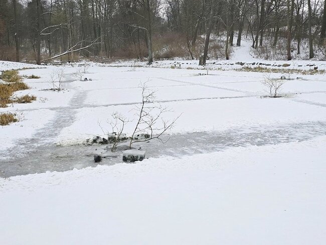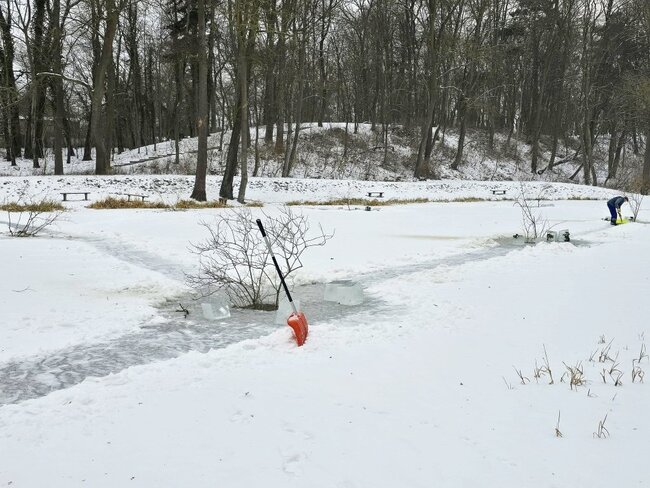 Z uwagi na konieczność wykonania #przerębli na stawie, które umożliwiają prawidłową wentylację zbiornika przy grubej pokrywie lodu, prosimy z powodów bezpieczeństwa nie zbliżać się do przerębli.