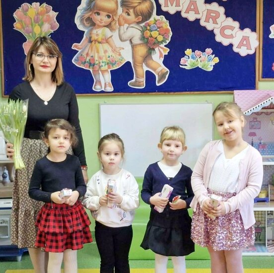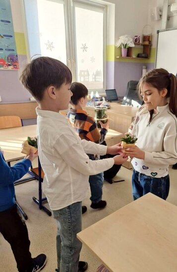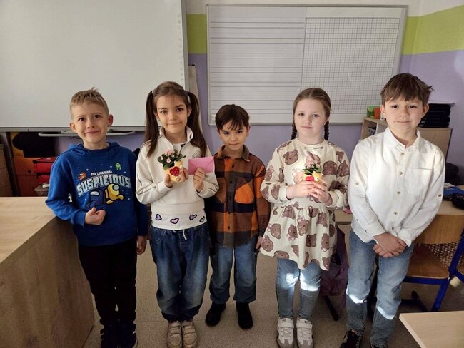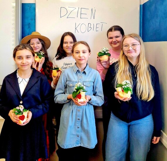 Nie zabrakło również pięknych gestów w klasach. Nasi chłopcy pamiętali o koleżankach – dziewczynki otrzymały kwiaty oraz słodkie upominki.
