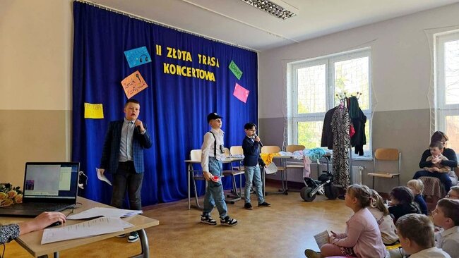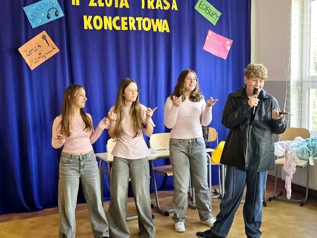 Z tej okazji odbyła się II edycja Złotej Trasy Koncertowej, podczas której na naszej szkolnej scenie pojawiły się prawdziwe gwiazdy! Publiczność mogła zobaczyć występy takich artystów jak Weekend, Zenon Martyniuk i Łobuzy, Alicja Majewska, a także bawić się przy skeczach Kabaretu Młodych Panów. Było muzycznie, wesoło i bardzo energetycznie – sala wypełniła się śmiechem, śpiewem i świetną zabawą.