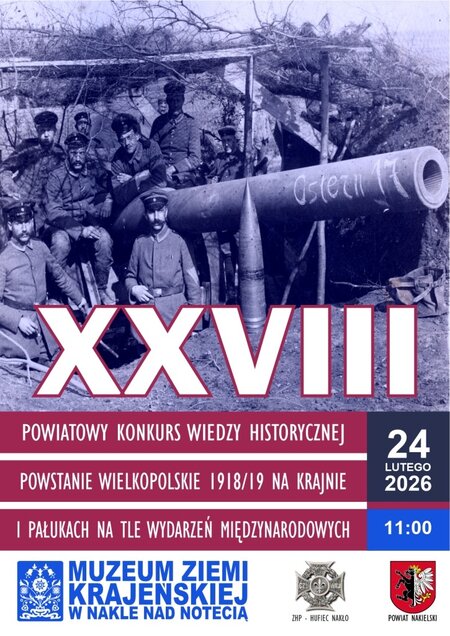 Muzeum Ziemi Krajeńskiej w Nakle# nad Notecią zaprasza na "XXVIII Powiatowy Konkursu wiedzy o Powstaniu Wielkopolskim na Krajnie i Pałukach 1918/1919 na tle wydarzeń międzynarodowych".