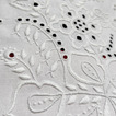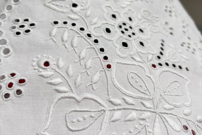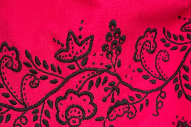 Haft pałucki to tradycyjne zdobienie białą lub czarną nicią na lnie, bawełnie i tiulu. Charakterystyczne są dla niego roślinne motywy – kwiaty, liście, gałązki – tworzone za pomocą różnorodnych ściegów.