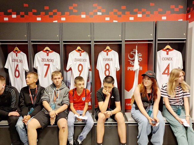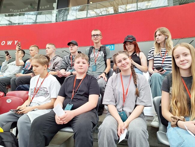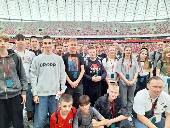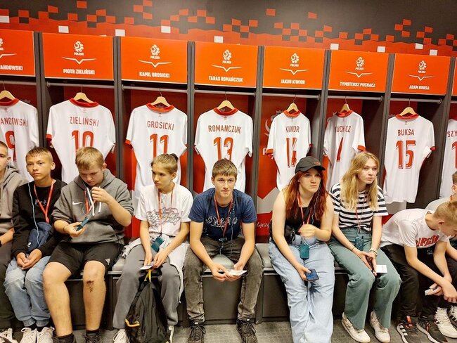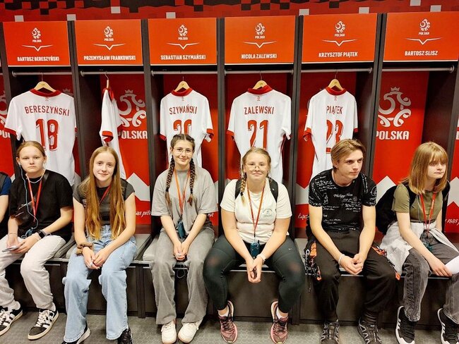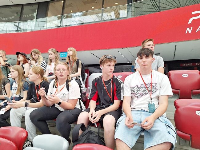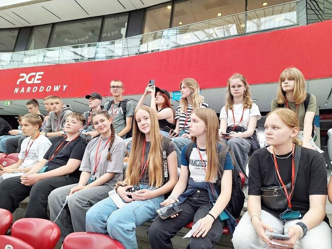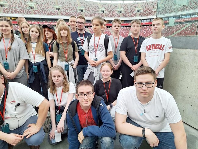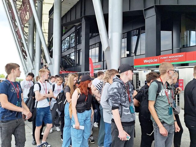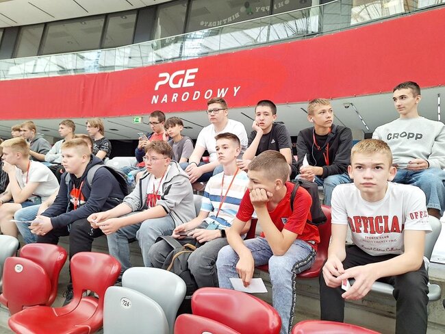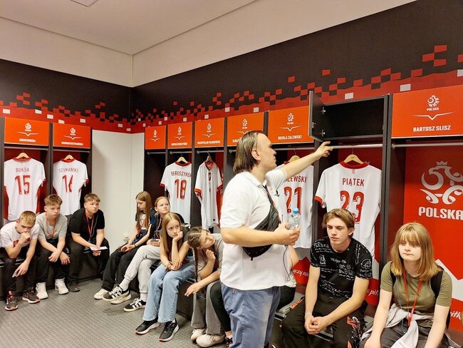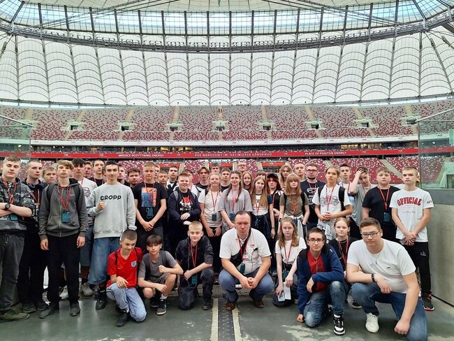 Rekreacyjny element wycieczki. Młodzież zwiedzała Stadion Narodowy