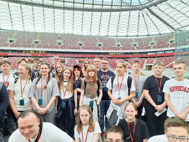 Zwiedzanie Stadionu Narodowego w dniu# 14 czerwca 2024 r. było rekreacyjnym elementem wycieczki w ramach projektu „Warszawa dwóch powstań” do stolicy, w której udział wzięli uczniowie nakielskiej Czwórki i Żeglugi