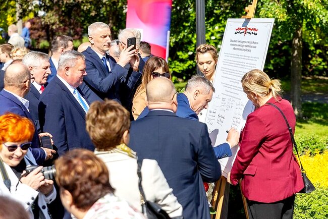 Zebrani w piątek (23 maja) w Kowalu #w powiecie włocławskim samorządowcy naszego województwa wszystkich szczebli złożyli podpisy pod deklaracją z okazji 35-lecia odrodzonego samorządu terytorialnego. „Od 1990 roku budujemy Polskę opartą na współpracy, solidarności i partnerstwie. Gminy, powiaty i województwa tworzą spójny system, który skutecznie odpowiada na wyzwania, wspiera rozwój i troszczy się o tych, którzy potrzebują pomocy. Samorządność to siła — zakorzeniona w wartościach, oparta na doświadczeniu i otwarta na przyszłość” – czytamy w dokumencie. Zdjęcia do pobrania