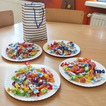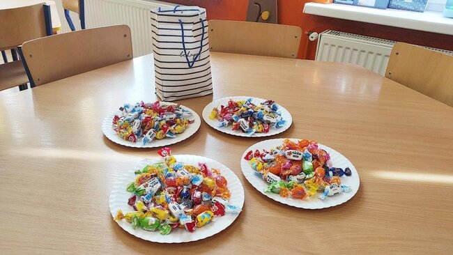 Po sportowych zmaganiach obie zwycięskie drużyny z apetytem zajadały przygotowane z ziemniaków frytki. Na deser niespodzianka, z którą przybyła do przedszkola Pani Barbara Sądel - słodkie cukiereczki dla naszych najmłodszych.