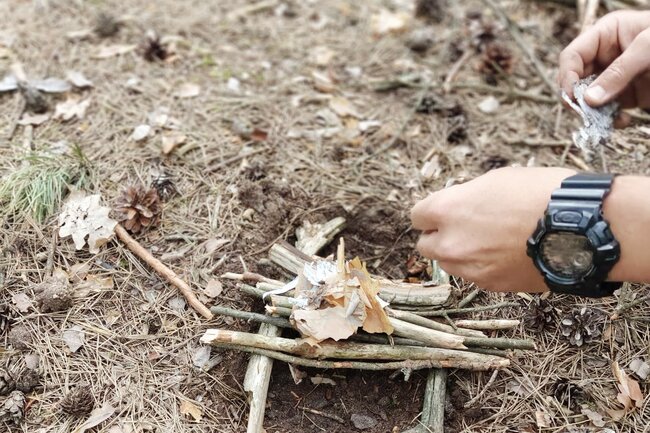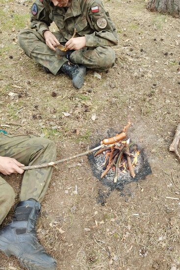 Kadeci zostali przemaszerowani w nowe miejsce, gdzie rozpoczęli praktyczne zajęcia z zakresu: Rozpalania ognia w różnych warunkach, Wybierania odpowiedniego miejsca na odpoczynek, Gotowania wody w kubkach polowych, Przygotowywania prostego posiłku (zupa, kiełbaski) z wykorzystaniem dostępnych środków.