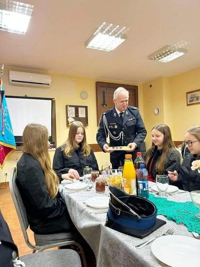 Na początku Naczelnik przywitał zaproszonych gości, strażaków i członków MDP. Z okazji Walentynek każda z Pań otrzymała od Naczelnika coś słodkiego, to był miły gest.