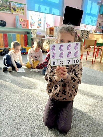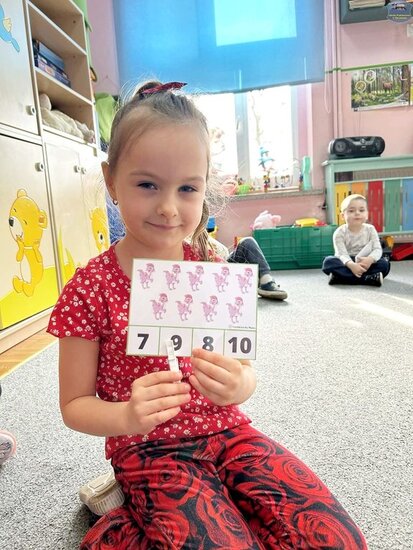 Podczas zajęć przedszkolaki doskonaliły umiejętność przeliczania elementów oraz utrwalały znajomość cyfr poprzez różnorodne ćwiczenia i gry. Dopasowywały cyfry do odpowiedniej liczby elementów, a także porównywały liczebność zbiorów, ucząc się wskazywać, gdzie jest więcej, mniej lub tyle samo.