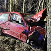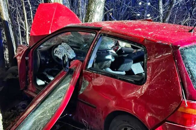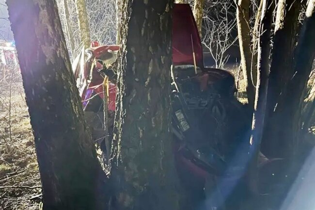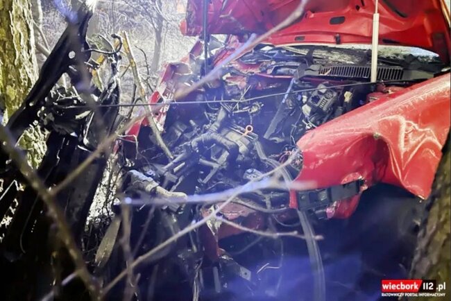 Na miejsce zadysponowano dwa zastępy z Jednostki Ratowniczo-Gaśniczej w Sępólnie Krajeńskim oraz po jednym zastępie z Ochotniczej Straży Pożarnej w Płociczu i Kamieniu Krajeńskim. Na miejscu okazało się, że z niewyjaśnionych przyczyn samochód osobowy marki VW wypadł z drogi i uderzył w przydrożne drzewo.