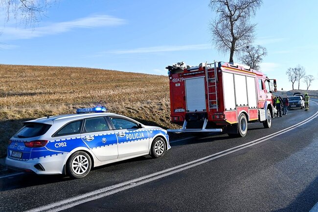 Do zderzenie nissana i seata doszło przed godziną 8.00 na zakręcie. Na miejscu działania prowadziły straż pożarna i policja, która ustala okoliczności tego zdarzenia.