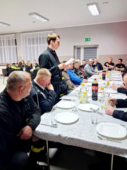 Otwarcia zebrania dokonał Wiceprezes - Naczelnik Zarządu OSP dh.Łukasz Jachim, który przywitał zaproszonych gości m. im Dowódcę Jednostki Ratowniczo-Gaśniczej w Szubinie mł.kpt Marcina Gajewskiego, Radnego Rady Miejskiej w Kcynia Tomasza Świerc oraz przybyłe druhny i druhów a także członków Młodzieżowych Drużyn Pożarniczych.