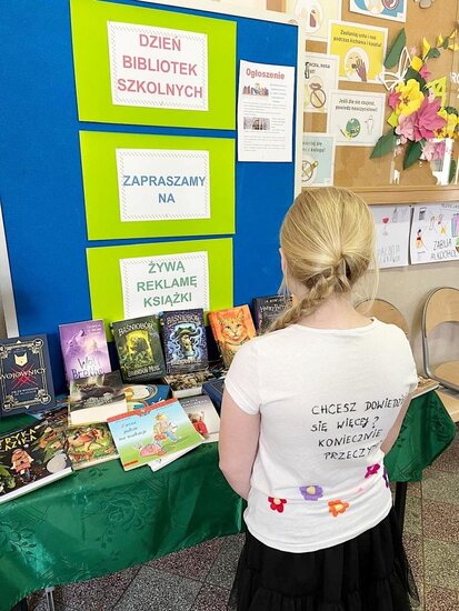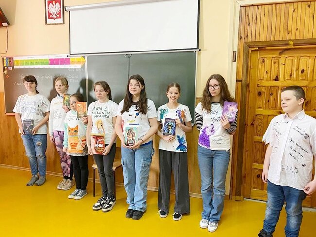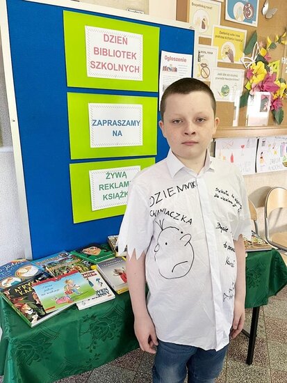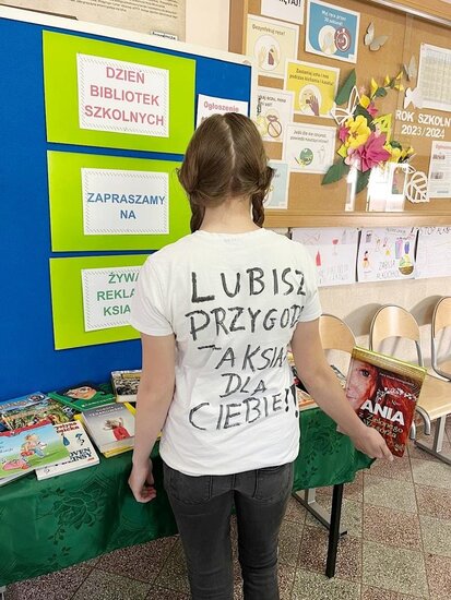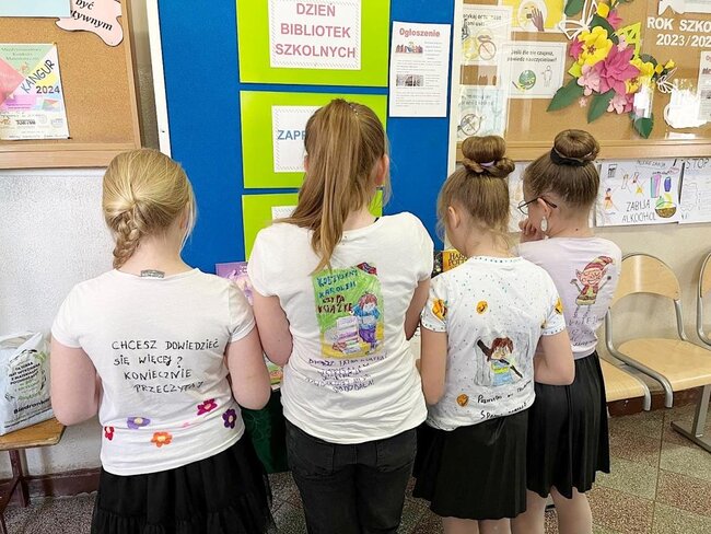Uczniowie z klas III – VIII, przez cały dzień prezentowali społeczności szkolnej własnoręcznie przygotowane koszulki reklamujące swoje ulubione książki i ich bohaterów. Podczas wszystkich przerw spotykali się z rówieśnikami, by „zarażać” pasją czytania, zachęcać i namawiać do przeczytania właśnie ulubionej przez siebie pozycji książkowej. Zainteresowanie akcją było duże!
